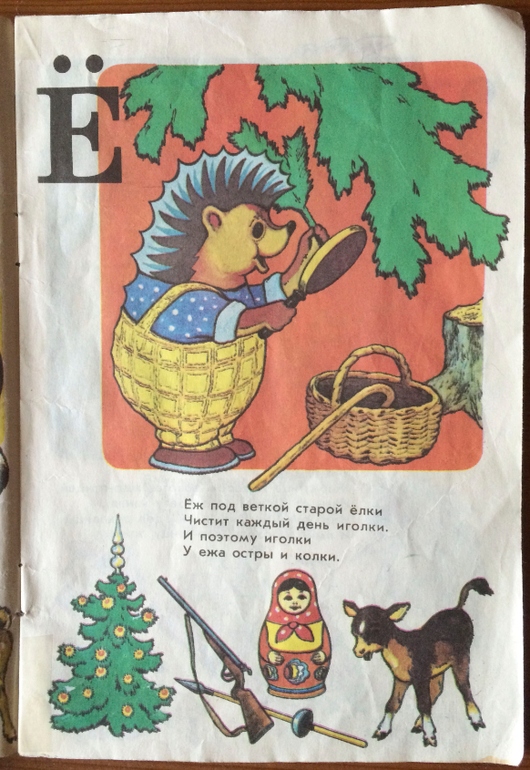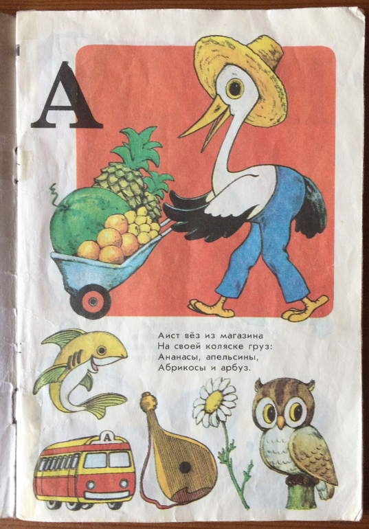 Детская, старая, теплая и настоящая, из детства. По ней же и брата учила читать. Есть 2 сохранившихся формата: А5 и А3. Честно говоря, зачем мама (моя) покупала А3 не совсем понятно - слишком большая и хранить неудобно.