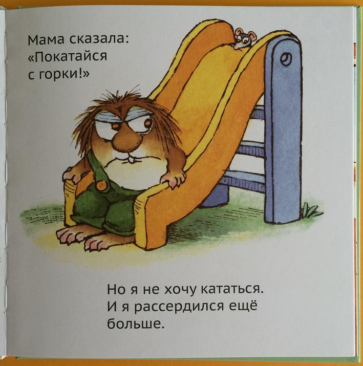 Попытались договориться: когда ты сердишься, неси маме эту книжку, мы ее прочтем, и ты покажешь как ты сердита. Сначала, действительно, работало как задумывалось - неслабежаласама и явно была рада, что книга про одну из ее самых новых и непонятных эмоций, таким образом отпускало и договориться становилось совсем легко; но позже книга приносилась все реже и реже, по сути забылась, но вот желание сказать свое чувство ("Мама, я сердита!" - на это невозможно не улыбнуться!) или понять мое чувство ("Мамочка, не сердись, я тебя люблю!"), и даже согласиться на компромисс - это осталось.О том, что само сердитое настроение реже не стало возникать - тут, пожалуй, лучше умолчать.