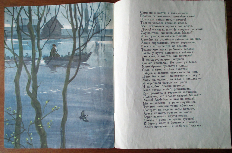 Н.А. Некрасов "Дедушка Мазай и зайцы", изд. "Малыш", 1977 год, художник Я. Манухин. Несколько страниц показываю.
