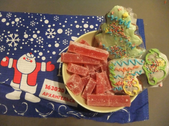 Доказательством того, что это всё необыкновенно вкусно, может служить то, что когда я собралась, часика через пол, делать фото, то мармелада осталась ровно половина, да и пряников мы не досчитались))