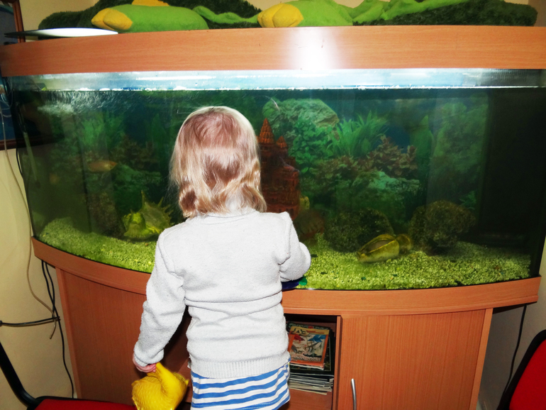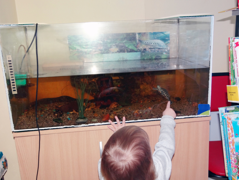 Каждый раз мы приходим и не дойдя до книг, останавливаемся попялиться в рыбок.