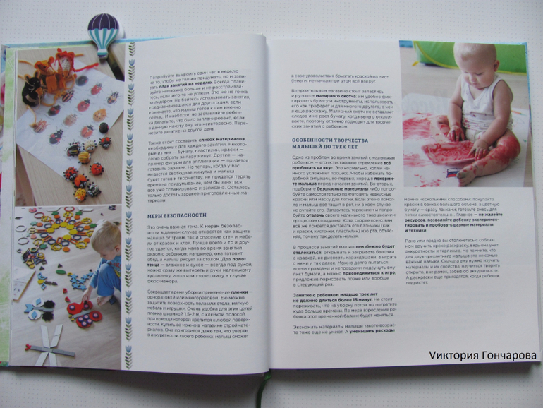 Эта книга рассчитана прежде всего на мам, чьи детки в возрасте от года до трех. Но моему ребенку 4 с небольшим. И я нашла в ней очень полезные советы и идеи. А вот если бы такая книга оказалась у меня раньше, я сэкономила бы много времени, потраченного на поиск необычных, нестандартных занятий для ребенка.