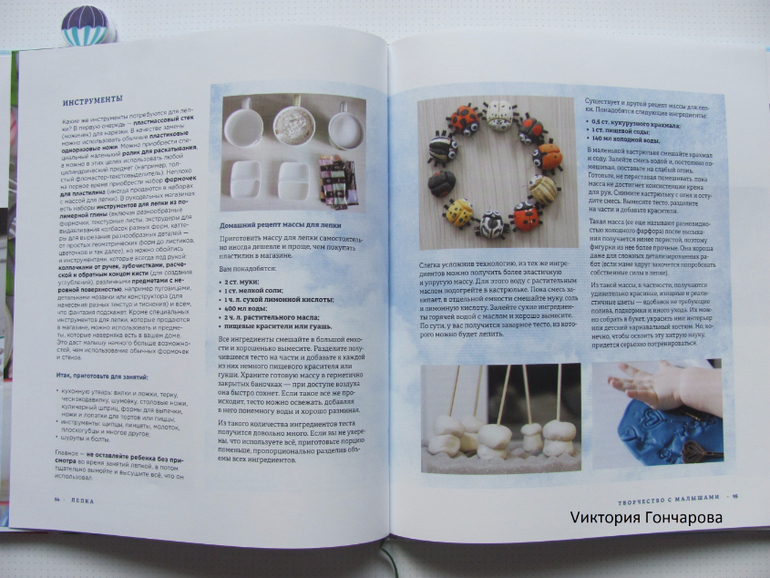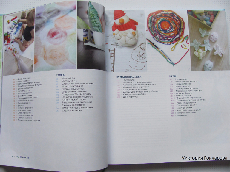 Следующий раздел - Лепка. Так как лепка у моего ребенка - это любимый вид творчества, это раздел я читала очень внимательно! Конечно, я бы добавила еще несколько идей в это раздел