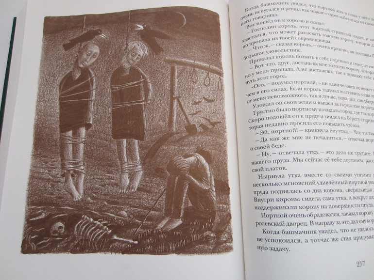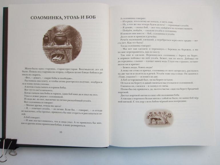 Но их не так и много! В сборнике 280 страниц, полностраничных иллюстраций - 21. Каждая сказка начинается с небольшой картинки-заставки, каждой раз своей, особенной, а завершается иногда картинкой, иногда без неё. Для завершения встречается не так много вариантов, одинаковых много.