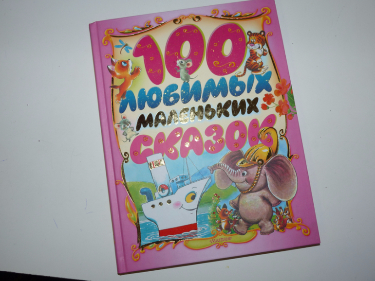 Для малышей хорошая, только сказок не 100, а 52. Сказки всем известные, здесь и Сутеев, Остер, Козлов, Цыферов, Ушинский, Успенский и т.д. Шрифт крупный, иллюстрации очень яркие, насыщенные цвета.