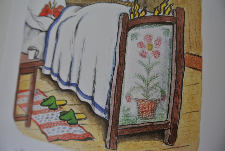 Иллюстрации... Работа художника очень понравилась! И напечатано превосходно! Старший пират сразу сказал, что рисунки похожи на часто просматриваемый Пилотовский мультик "Жихарка". Что-то есть, согласна. Но все равно каждая из работ уникальна. А когда читаю эту сказку, в голове всегда голоса из мультика:))