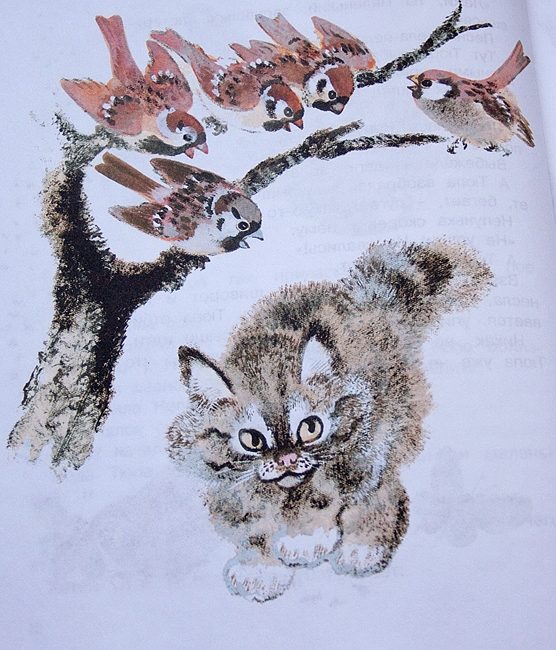После прочтения "...он двигает губами и тюпает: "Тюп-тюп-тюп-тюп..." дочь даже как-то обиделась: "Мама, киски так не делают! Так птички делают!"