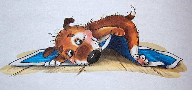 История о любви к вишневому варенью, так же обожаемому моей дочерью так же пришлась особенно по вкусу. И пятнышки на скатерти, сделанные собачкой вызвали взрыв смеха со словами: "И я так делала".
