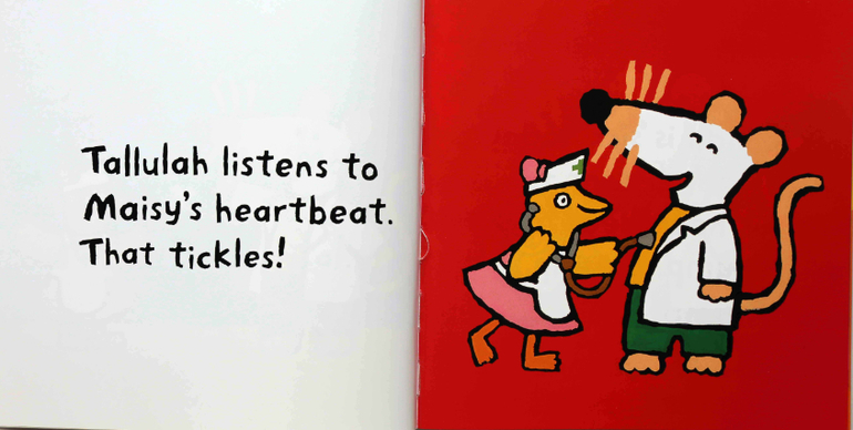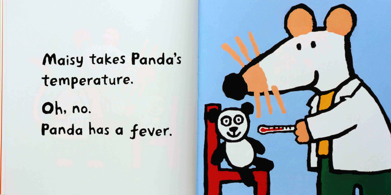 Книга Doctor Maisy автора Люси Казенс просто замечательна для маленьких деток. Небольшое количество слов, понятная бытовая ситуация. Мы прочитали с Ваней эту книгу несколько раз, пока она не улеглась у Вани в голове, но с тех пор к ней почти не возвращаемся. Но когда мы читали другую книгу про мышку Мейзи в возрасте 1.10 - это был настоящий хит. Перечитывали бесконечное количество раз, каждый раз с большим восторгом. Больше всего Ване нравилось выкрикивать слово empty ( про пустой холодильник). С тех пор это слово прочно закрепилось в Ванином лексиконе.