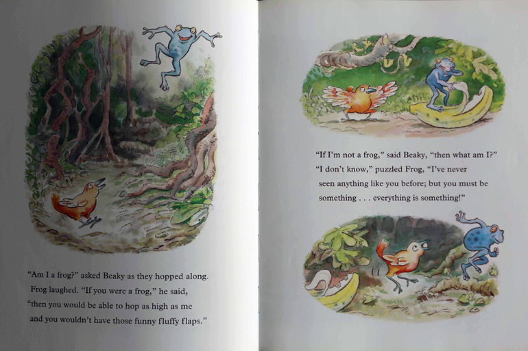 Первое место однозначно занимает Hello Beaky! Это единственная книжка, которую мы читали и до поездки, и во время, и читаем до сих пор. Она не сдает своих позиций уже полгода, что меня немного удивляет, потому что Ваня вообще не такой уж большой любитель книг про животных, а в этой как раз рассказывается про птичку, которая не знает кто она. Подружившись с лягушкой, они вдвоем пытаются выяснить, что же за животное Beaky.