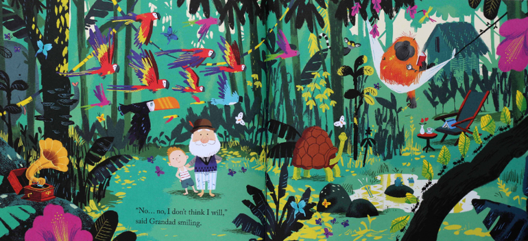 Вторая по популярности книга Grandad's Island. Очень яркие и красочные иллюстрации Бенджи Дэвис в очередной раз нас очень порадовали. Плюс таинственный чердак, пароход и путешествие по неизведанному острову - это то, что не могло оставить Ваню равнодушным. Благодаря этой книге активный словарный запас пополнился словами attic, grandad, island. А еще Ваня сооружал свой "корабль" - он заваливал журнальный столик подушками, игрушками и всевозможными вещами, забирался на верх и кричал во весь голос All aboard! Land ahoy!