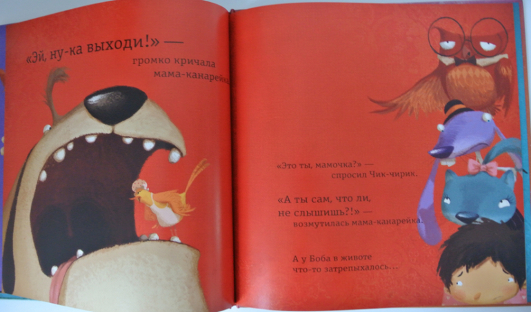 Большой формат, книжка-картинка, с играющим шрифтом и триллером внутри.