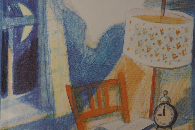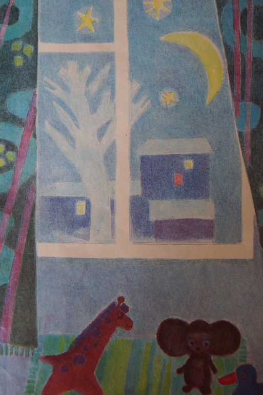 Мне 5 лет, засыпаю, за окном горит фонарь, видна луна и окна соседней пятиэтажки. Сейчас, по стечению обстоятельств в наше окно тоже заглядывает фонарь, сын, засыпая, мечтательно смотрит на луну и теплые светящиеся квадратики окон.