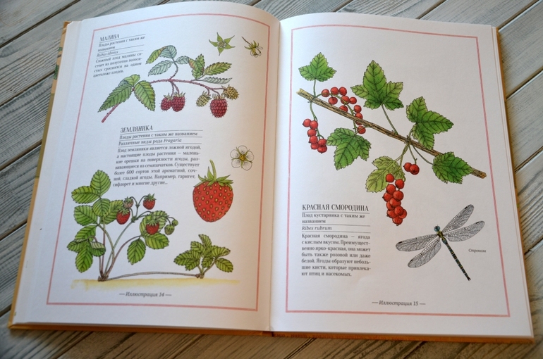Все иллюстрации очень тонко и целостно проработаны. Они не просто выглядят натуралистично, а словно передают вкус и аромат природы, книга стала для нас одной из любимых и часто открываемых, уверена и останется ею ещё на годы.