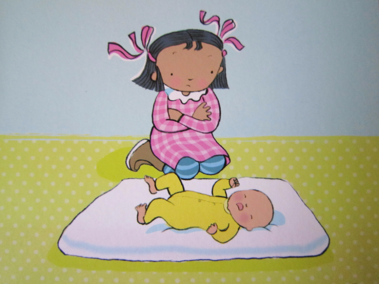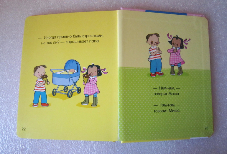 А теперь, когда сынок начал ходить и играть с дочкой, она стала по-другому воспринимать героев книги: это уже там она и братик (большой мальчик), а малыш - это будущий малыш (третий) в нашей семье :)