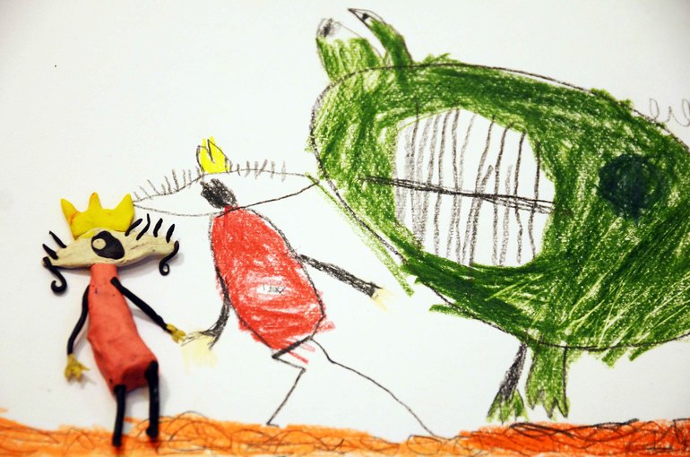 Сюжет со страшилищем ( это же любимое по части сына) даже мотивировал к творчеству, дочка творит в свободном полете)))