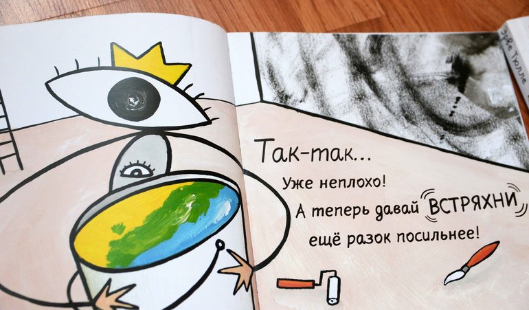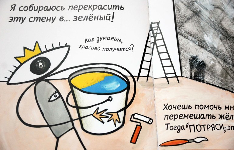 Очень много интересных и полезных дел можно совершить со столь необычным персонажем, например выкрасить стены и при этом непосредственно участвовать и видеть процесс - отчаянно трясут книгу, смешивая краски))