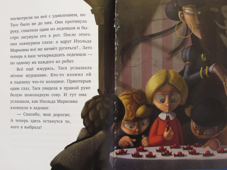 И сразу начались приключения: знакомство со злой волшебницей Изольдой Марковной, встреча с новыми друзьями, знакомство с мармеладными феями и тд.