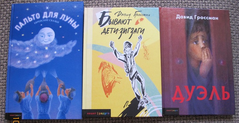 Издательство Кешет Радуга. Бывают дети-зигзаги читала в электронке, купила все же бумажный вариант. Шрифт мелковат. Дуэль еще не читала. В Пальто для луны очень нежные иллюстрации.