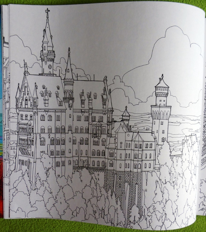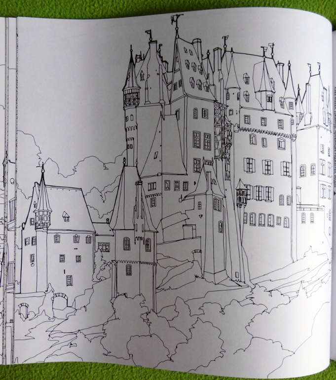 Основные пейзажи раскраски - это потрясающей красоты замки и соборы, памятники архитектуры, дома причудливой формы, мосты, шахты, электростанции и другие постройки. Рисунки очень детализированные.