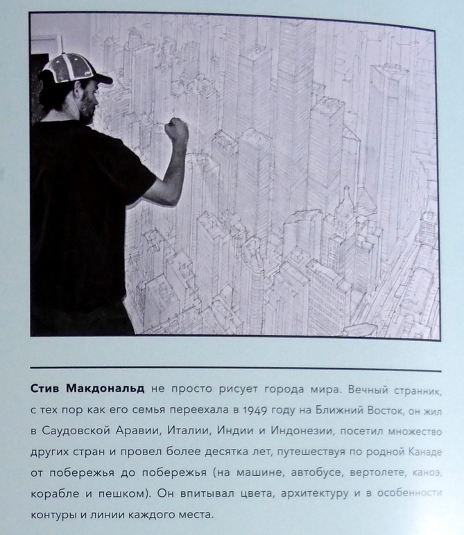 Автор раскраски Стив Макдональд - канадский художник, который не только рисует виды городов мира, но и очень много путешествует. Он объехал всю родную Канаду и много ездил по миру. В поездках он наблюдает за местной архитектурой, делает скетчи и фотографии.