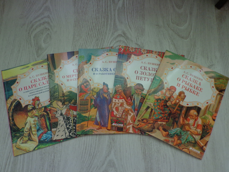 дневник читателяХочу рассказать о недавно приобретенной в fix-price серии книг А.С. Пушкина от издательства Клевер. Очень мне они понравились, купила все, что были, хотя много не по возрасту, читаем только «Сказку о рыбаке и рыбке».