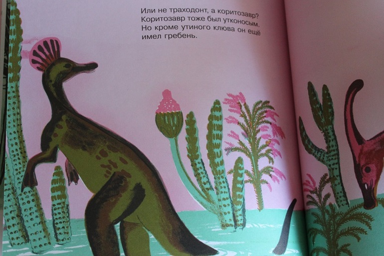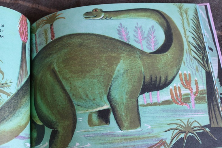 Страниц немного, именно поэтому к книге нужно относиться не как к научной энциклопедии (чтобы не было потом разочарований), а именно как к детской художественной литературе. Текст написан хорошо, грамотно и красиво, моя душенька осталась довольна повествованием. При скромных объемах - 2-3-4 предложения на страничку - книга умудряется дать и полезную информацию о среде обитания вымерших гигантов, и запаковать ее в красивую обертку из метафор, эпитетов и прочих стилистических оборотов.