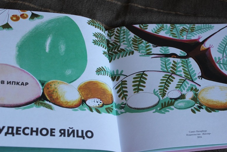 Есть короткий рассказ о том, как в древнем-древнем лесу появилось необычное яйцо. И никто не знал, кому оно принадлежало. Какому виду динозавров? Хищному или травоядному, с шипами на хвосте или необычным забором из пластин на спине?