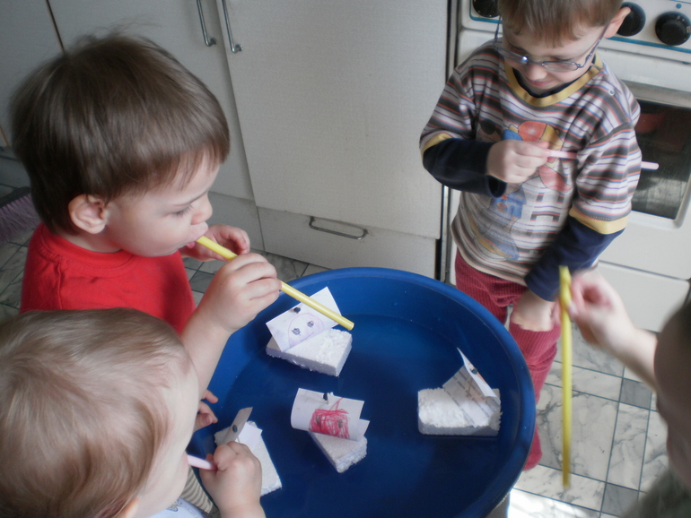 У батискафа я и сама не очень улавливаю суть принципа работы, не говоря уже о том, чтоб понятно объяснить детям, поэтому им в двух словах объяснила про подводную лодку (проще пареной репы - набрали воду в цистерны, продули цистерны), про балласт и дифферент и, пока не замочили рукава, пошли слушать песню про усталую подлодку