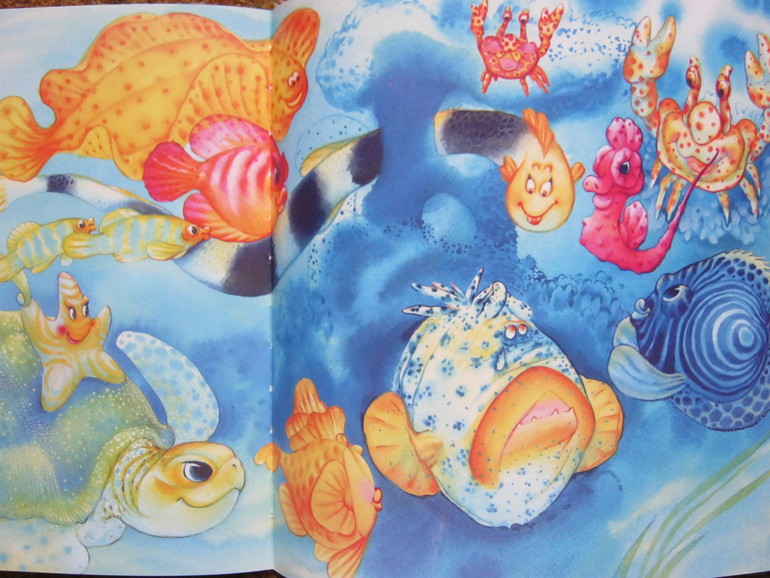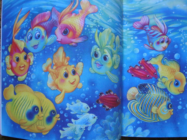 Приключения рыбки Молли - очень нарядная яркая книжечка, привлекающая к себе внимание как раз за счет этой яркости. Книжка особой познавательной ценности не несет, текст в ней психотерапевтический. Но она давно и надежно служит в качестве "вводной" книги в подводное царство )