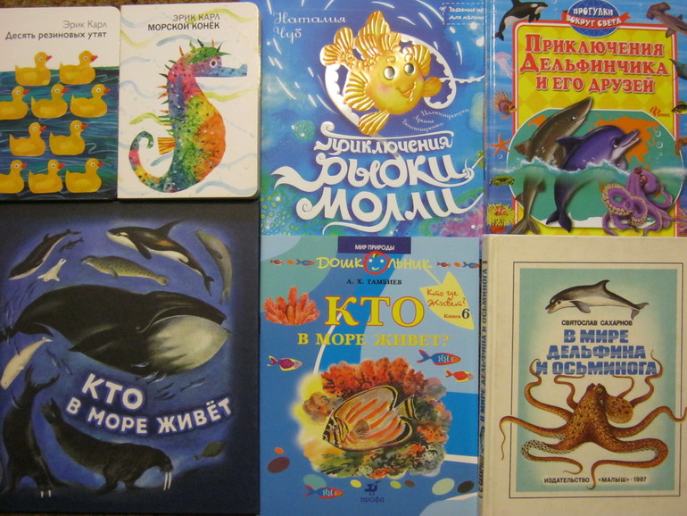 Подводное путешествие вместе с книгами Эрика Карла Морской конек и 10 резиновых утят занимают место морских азбук и букварей перед чтением других книг с большим количеством текста и объемом информации.