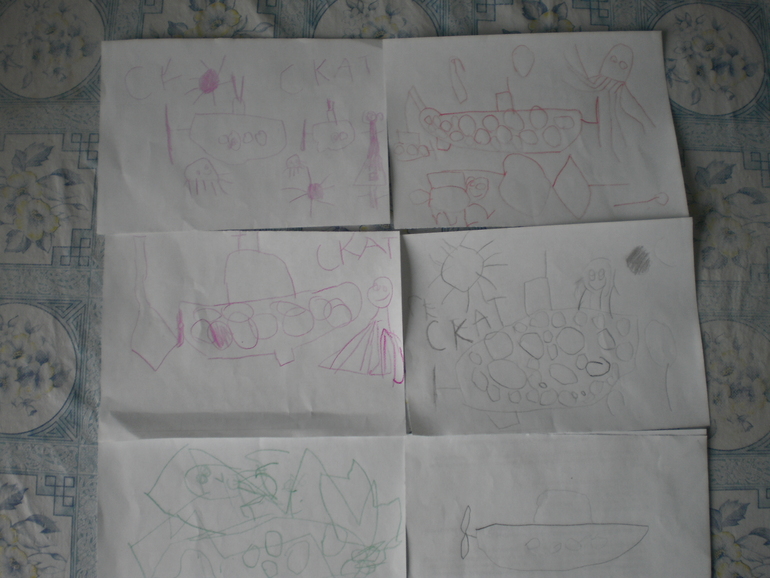 Перед испытаниями мы смотрели презентацию с найденными в сети картинками-изображениями и фотографиями батискафов и сделали технические эскизы