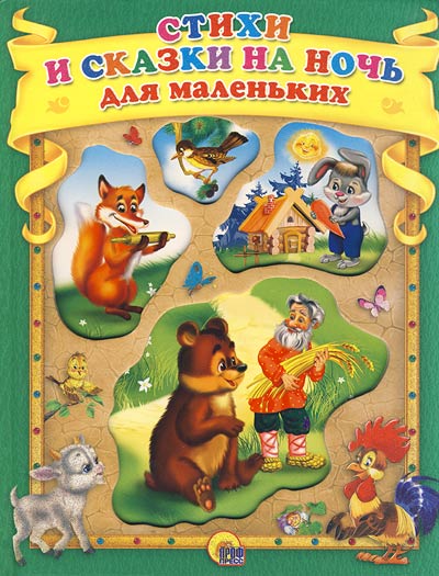 Это сборник русских народных сказок таких как, "Вершки и корешки", "Заюшкина избушка", всего 6 сказок, и колыбельные стихи в основном со словами Баю-бай. Читали-перечитывали мы эту книжку на ночь, сказки и стихи не длинные, сюжеты не замысловатые, для самых маленьких - неплохо. У нас она была в мягкой обложке, поэтому истрепалась сильно.