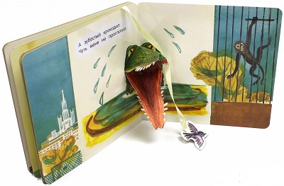Может и не для самых маленьких,но она картонная и просто прикольная, с воробьем на ленточке и объемным крокодилом на последнем развороте