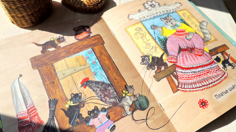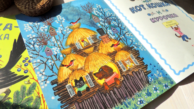 "Собака, кот, кошка и курочка" смело можно рекомендовать как первую книгу для малыша. Тут на каждый разворот всего 1-2 строчки, плюс изумительные иллюстрации, которые мы рассматриваем, обсуждаем, играем и развиваем речь попутно.