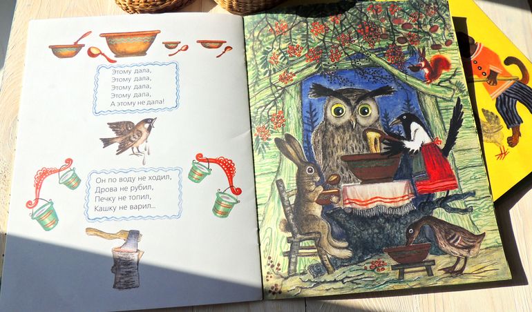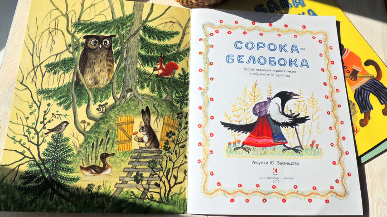 "Сорока-белобока" - эту потешку знают, наверное, все "...этому дала, этому дала, этому дала, этому дала, а этому не дала...". У книжки замечательный потенциал для работы с пальчиками и просто для прекрасного времяпрепровождения.