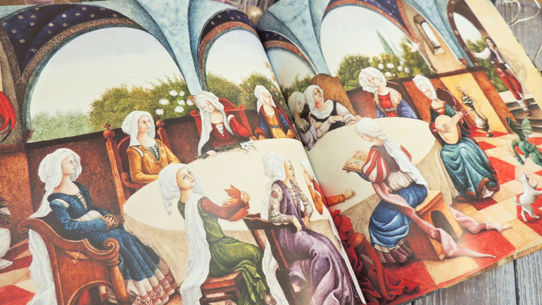 Иллюстрации, конечно же, не совсем детские. Они очень похожи на картины эпохи возрождения.