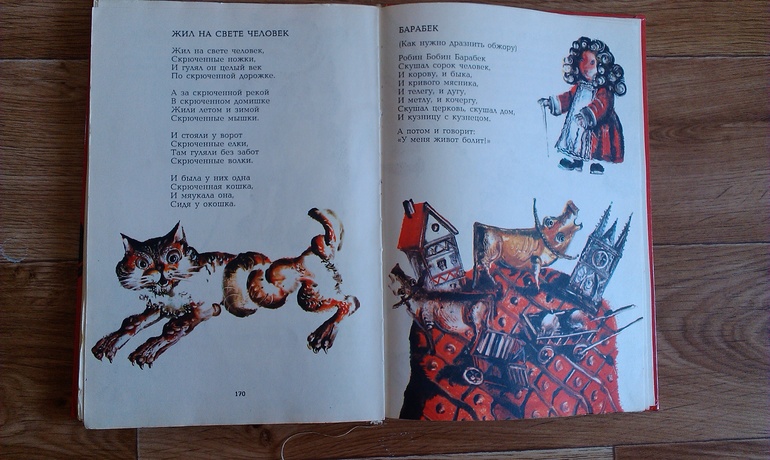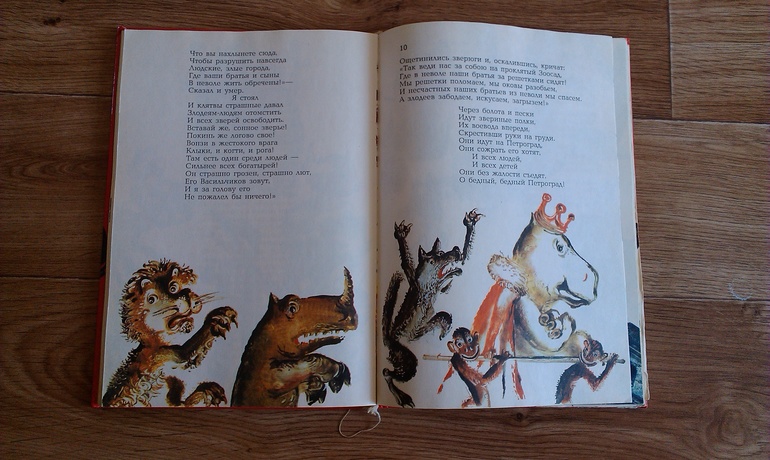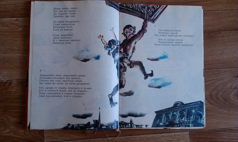 обсуждение прочитанногоРазбираю для дочки книжки, оставшиеся после моего детства. И вот этот вариант Чуковского. Эта книга появилась у нас уже мои школьные годы и всегда не нравилась мне своими иллюстрациями: слишком мрачными, грязноватых оттенков, будто намазанными тяп-ляп. Как считаете: это моё субъективное впечатление? Стоит ли знакомить малышку с таким Чуковским? Или ну его нафиг, пусть едет в подвал? Я еще только начинаю разбираться, что хорошо, а что плохо в книгах для совсем маленьких. Под катом для примера несколько фото иллюстраций. Только почему-то через камеру они выглядят ярче, чем в жизни.