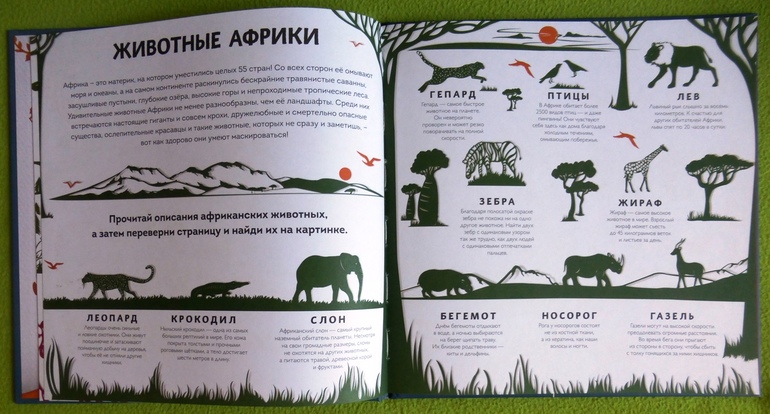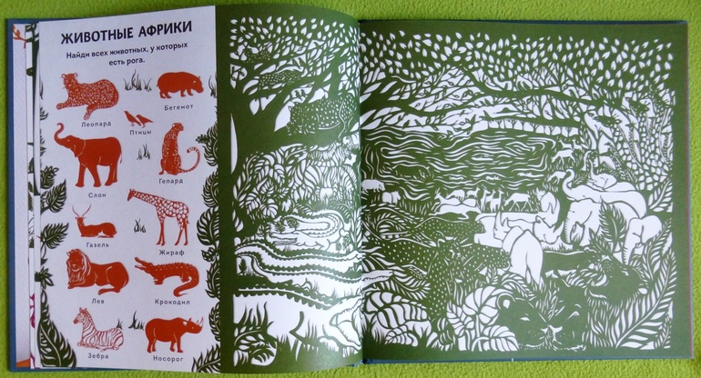 Также на этом развороте изображены все животные, которых можно найти на рисунке