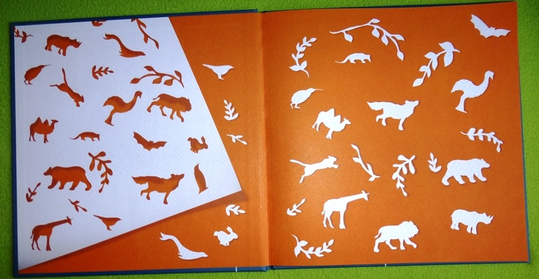 Рисунки в книге выполнены в интересной технике. Каждую страничку автор сначала вырезала из бумаги, а потом уже создавала из этого кружева иллюстрации. Художница Сара Деннис воссоздала целые сцены из мира дикой природы. Благодаря такому решению, рисунки кажутся объемными и многослойными, их невероятно интересно рассматривать и угадывать животных по силуэтам.