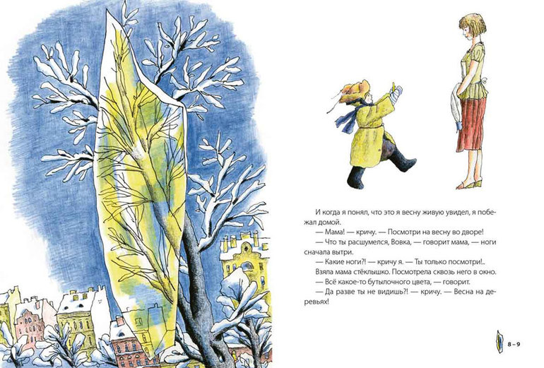 ..Вечером я лёг спать и придвинул к себе стул поближе. У меня на стуле лежала длинная водоросль с мелкими листочками. Водоросль была не зелёная, а жёлтая. Потому что Вадик сначала её высушил, а потом привёз и подарил мне. И пока я не заснул, я всё время её нюхал. У неё был такой чудесный запах! Потому что от водоросли чуточку пахло Чёрным морем, в котором живут дельфины.
