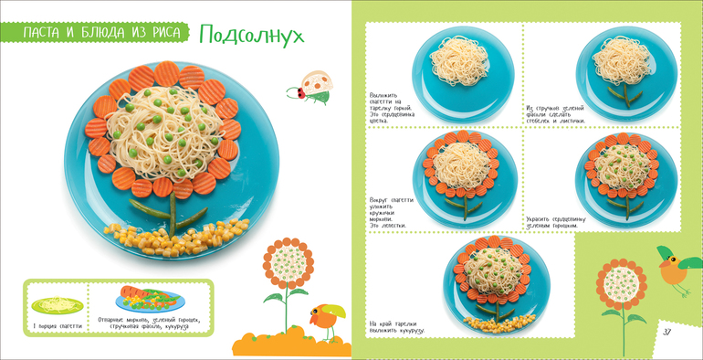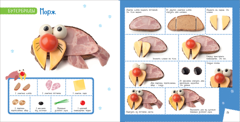 Простые, доступные продукты плюс немного фантазии, и на тарелке появятся забавные зверушки, персонажи, пейзажи. Неважно, хотите ли вы накормить детей обедом, собрать забавный перекус для пикника или вместе с маленьким именинником накрыть праздничный стол, вы найдете в этих небольших брошюрах любые варианты.