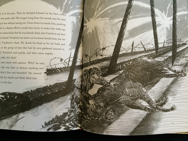 Проиллюстрировала эту книгу Рэй Смит - театральный художник Лондонского Национального Театра, она работала над декорациями к спектаклю и была приглашена Морпурго сделать иллюстрации к книге. Целиком спектакль посмотреть нельзя, но вот небольшой, но очень впечатляющий ролик - какие там куклы (если можно их так назвать)!