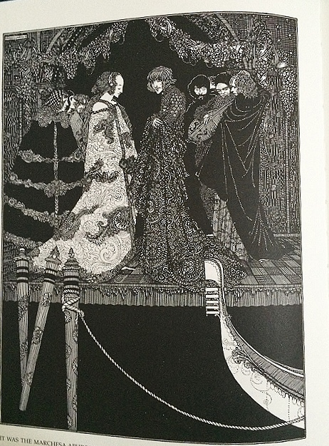 Варя, по традиции, перелистнула предисловие-биографический очерк и сразу стала читать стихи, прочитала, вернулась к началу, говорит, интересно узнать, каким был человек, живший в постоянной депрессии) И тут я привела Варю в ДК, читать потрясающе интересную историю) Настя , теперь мы на пару ждем экскурсию в дом -музей По( или даже две))- ну, когда найдется немножечко времени) И уж после такого знакомства Варя взялась читать его рассказы, у меня был припасен сборник Махаона для первого чтения, но не успела я ей его подсунуть, как она уже вытащила вот такой гробик томик, оформленный филигранными гравюрами гениального ирландца - Гарри Кларка (только сфотографировать его как надо у меня не получается()