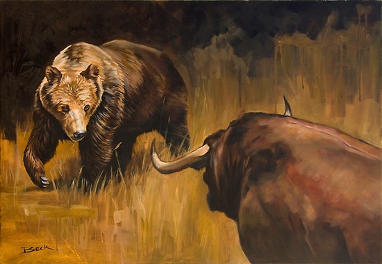 Никогда бы не подумала, что бык может дать отпор медведю! Правильно говорят: "Век живи - век учись". Ведь была уверена, что бык- жертва. Подойдет медведь и съест. Да не тут-то было!