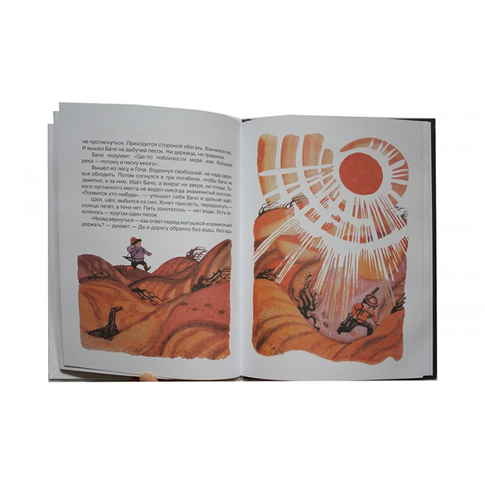 Про малыша охотника Бачо. Книгу читали с малого. Взяли вспомнить так сказать) Прочли почти всю. Мне она очень нравится. Такая атмосферная! Иллюстрации очень нравятся и истории - сказка и быль вперемешку)