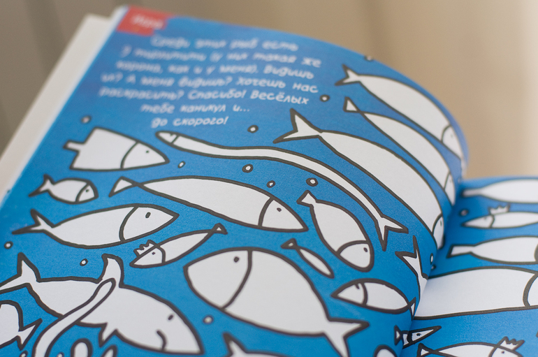 По правде сказать это не совсем книга. Читать там нечего, это книга с заданиями: разрисуй, наклей, нажми, подуй, дорисуй.