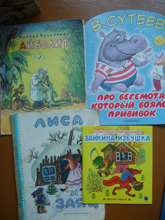 «Айболит» - в преддверии похода к врачам, которых Саня мягко говоря не жаловал, достали наши «лекарские» книги. Эта пошла хорошо. С тех пор стал интересоваться крестами, не пропуская ни одну аптеку на улице. Ещё повторял «Лимпопо, Лимпопо, Лимпопо». Затмила даже «Мойдодыра» и «Телефон». Популярна уже почти 3 месяца. Пару недель назад слышала, как Саня ходит и приговаривает: «Да-да-да, у них татина» (я уж было думала, что за «скотина» такая, пока не поняла, что это «скарлатина»).