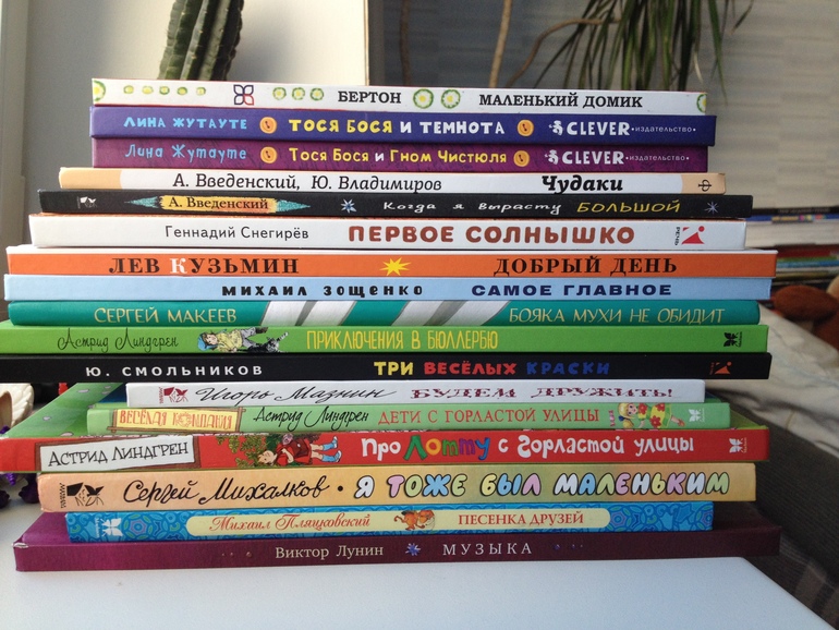 Из нового: 1. "Тося Бося"- очень понравилась, будем покупать остальные книги. 2. "Самое главное"-отличная книга, очень хорошо издана и рассказы на вечные детские темы:)) 3. "Бояка мухи не обидит"-мальчики не могли от неё оторваться, такая она забавная, прямо нас, к мы с понедельника начинаем новую жизнь:)))) 4. "Приключения в Бюллербю"-бесконечно любима, как и Лотта, засмотрена до дыр:)) 5. Виктор Лунин "Музыка"-очень нежные и тонкие стихи.
