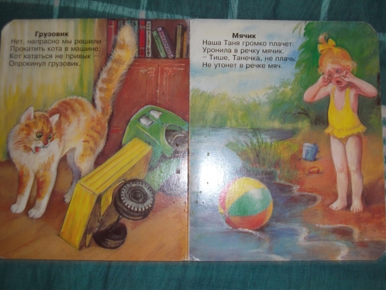 Картонки ниже мне достались по наследству. Это книжка Барто Игрушки, рис Малкус.![]()